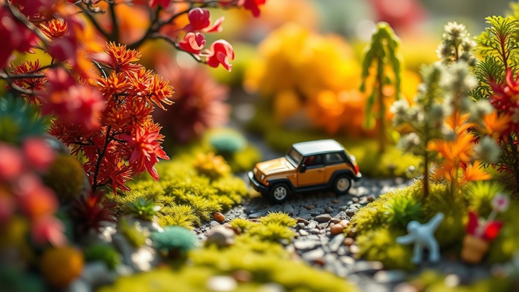 To create enchanting toy-like images, start by choosing the right camera and lens to capture every tiny detail. A tripod is essential for keeping your shots steady, especially when working with HDR. Don’t forget about lighting and accessories to add depth and vibrancy to your miniature scenes.