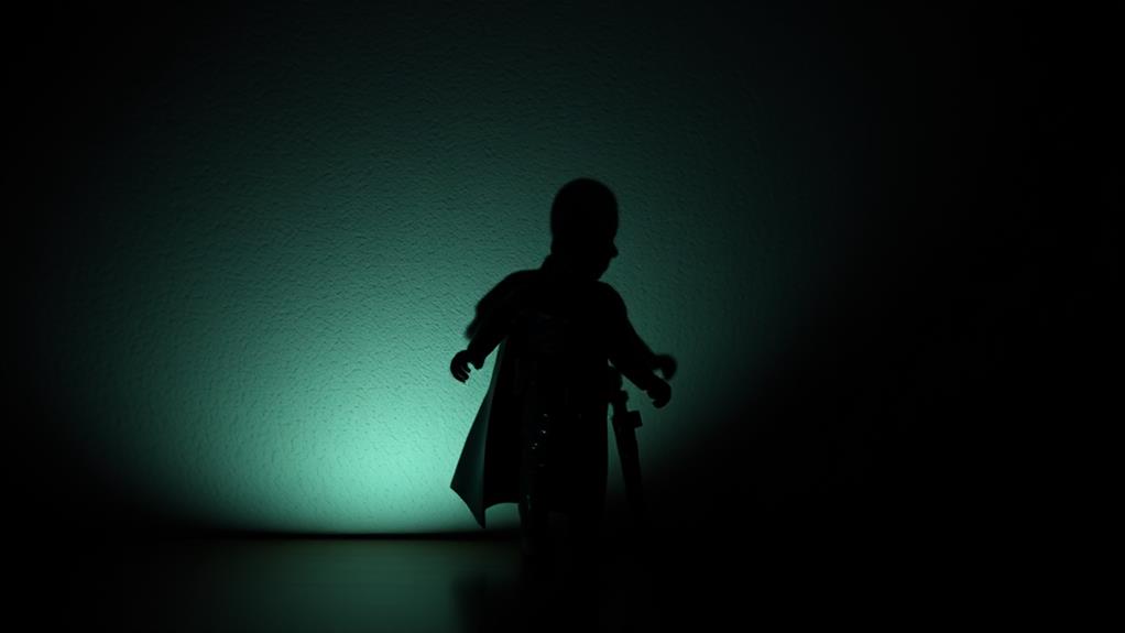 By mastering shadow techniques, you'll transform your toy photography into enchanting art. Imagine capturing a beloved childhood toy, like a teddy bear, enveloped in dramatic shadows. The bear's familiar, comforting shape is suddenly mysterious, evoking nostalgia and wonder. With the right backdrop and lighting, you create a scene that tells a story beyond the toy itself. Experiment with light and shadow to evoke emotions and transport viewers back to their cherished memories. Your creativity knows no bounds.