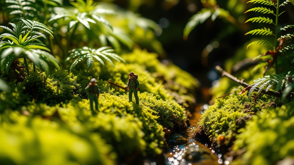 When integrating nature into your toy photography, consider using flora and fauna to create a vibrant and dynamic scene. Start by incorporating small plants or flowers around your toys to add color and life. Choose flora that complements your subject's colors or contrasts for a striking effect. Position them strategically to enhance your composition and guide the viewer's eye through the scene.