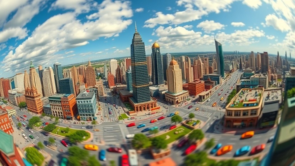 While creating an engaging toy panorama, mastering the balance of light and shadows is essential. Start by observing natural light sources around your setup. Use indirect sunlight or soft artificial light to create gentle highlights on your toys. You don’t want harsh shadows that overpower your scene, so consider diffusing the light with a white sheet or paper. Position your toys to take advantage of the light, ensuring they’re evenly illuminated.
