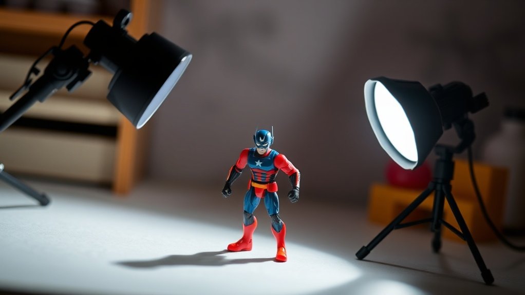 Optimize your toy photography skills by mastering the three-point lighting setup—uncover the secrets for creating captivating, dynamic images that truly stand out.